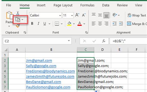 copy email addresses to excel
