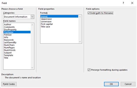 how to add a file location in word